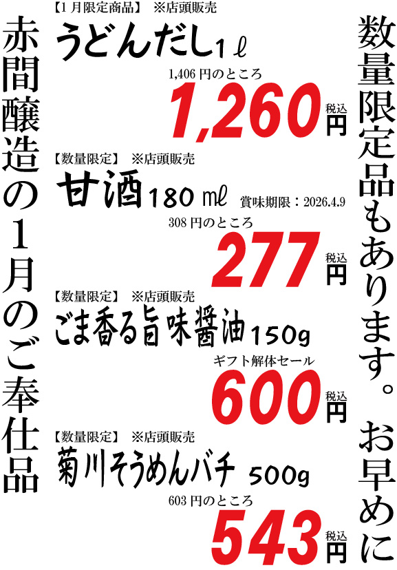 - 【店頭限定】生活応援企画!今月のお楽しみ商品!詳しくはこちら