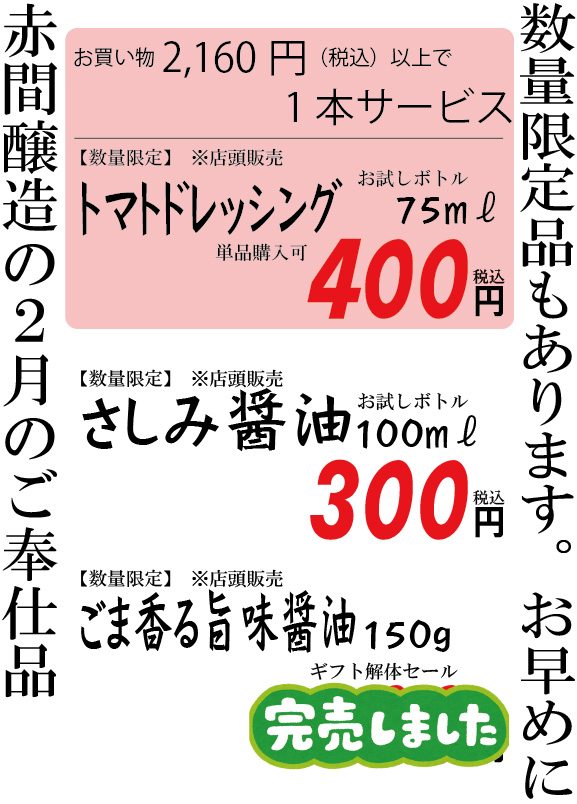 【終了】【店頭限定】生活応援企画!今月のお楽しみ商品!詳しくはこちら